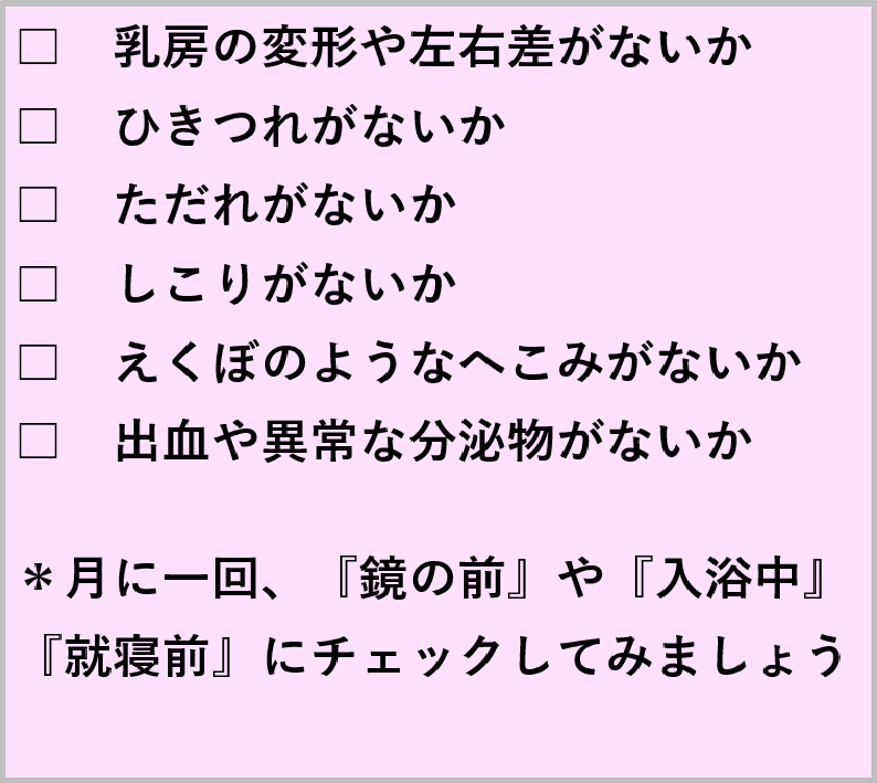 定期的にセルフチェックを行い、早期発見、早期治療に繋げていきたいですよね!!
