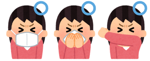 くしゃみや咳が出る時は、自分がウィルスを保菌している可能性も考えて咳エチケットを心掛けていきましょう!